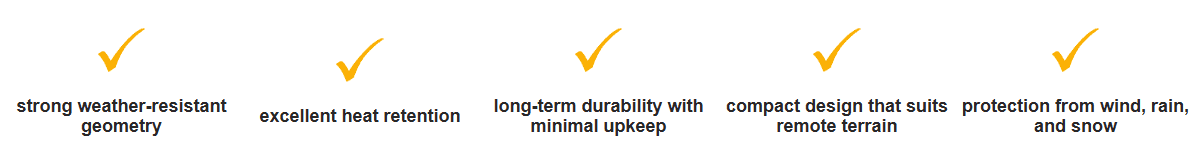 Its structure works with nature, not against it — which is exactly what you want in a backcountry shelter.